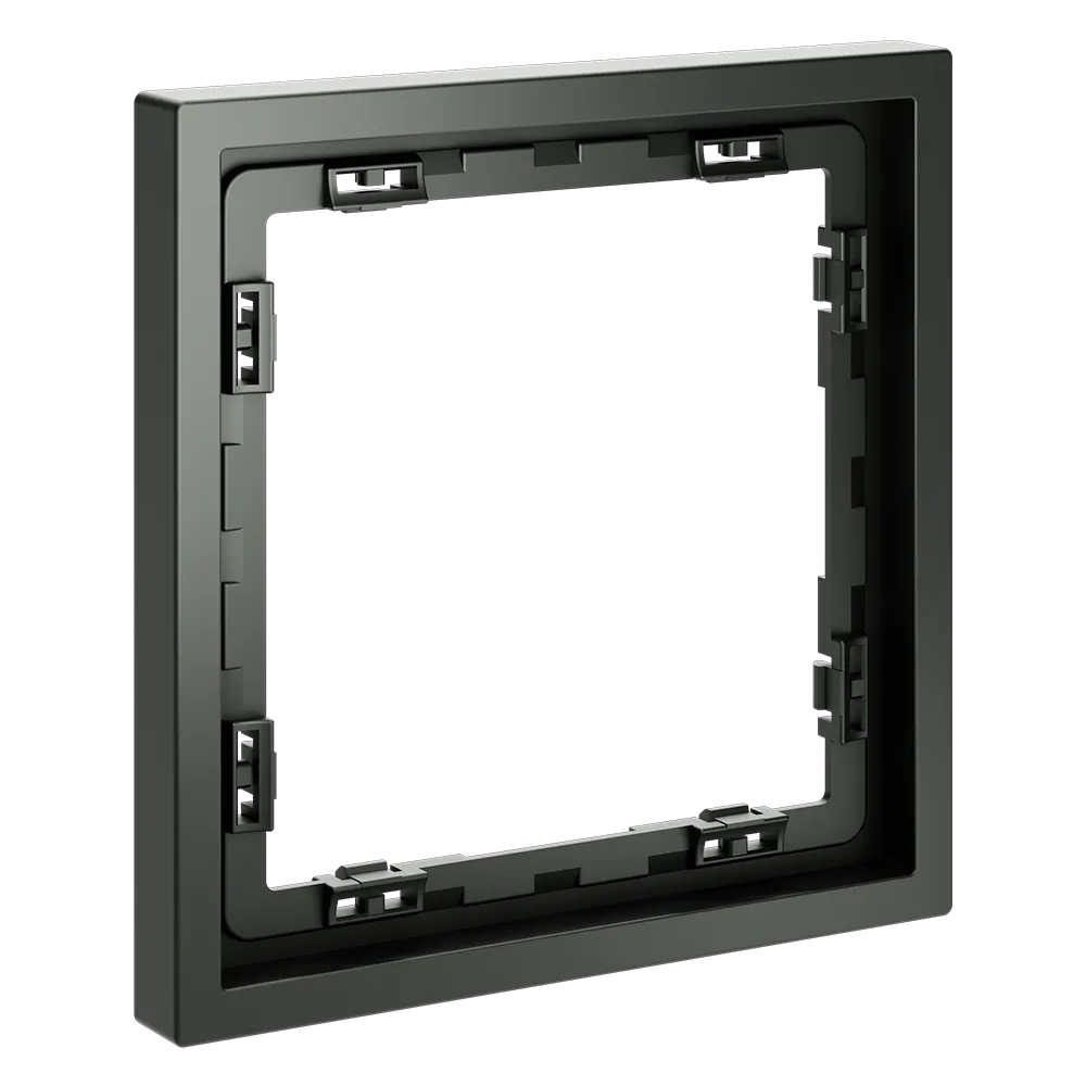 Обеспечивает быстрое и легкое соединение механизма с рамкой. Восемь фиксаторов по периметру нивелируют неровности стены и надежно удерживают конструкцию.
